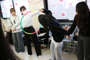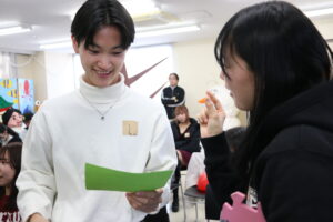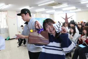 思い出のスライドショーや手話(カイト)、メッセージカードなどで感謝とエールを伝えました。また、学年を超えたチーム対抗ゲームやビンゴ大会などで盛り上がりました。手作りのあたたかい時間を過ごせました。